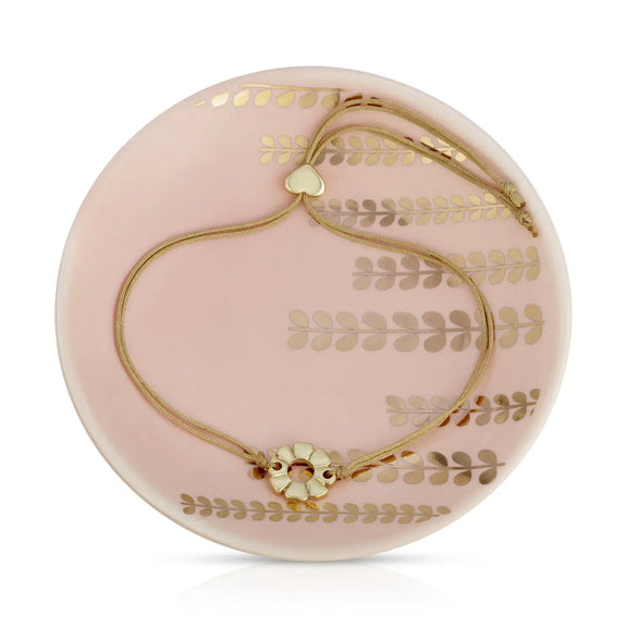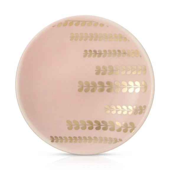 Perfectly paired bracelet and jewelry dish set makes a great gift for mom! She'll be thrilled to receive this light pink dish featuring gold flower accents, reminding her that she is beautiful and amazing.