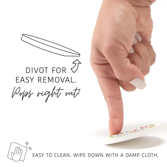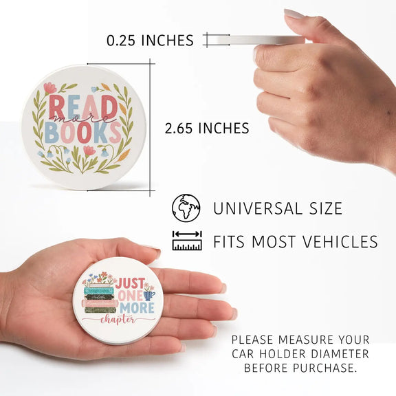 Car coasters fit snuggly into your vehicle’s cup holders. Strategic divot on one side so they can be easily popped out. Pretty & practical – a pop of design and they keep your cup holders clean. 2.65” diameter. Absorbent ceramic coaster. Designed, printed and packaged in the USA