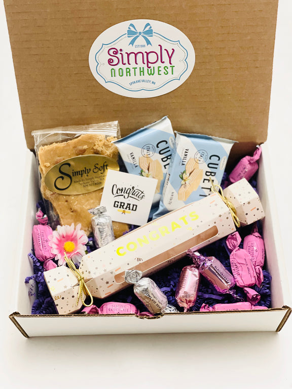 Send happy wishes to your favorite Grad with our congratulations themed gift box.
