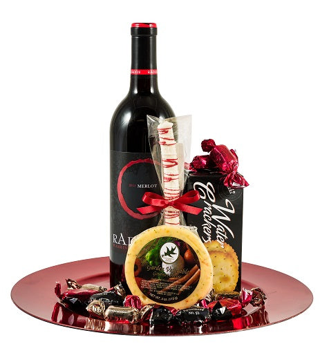 This elegant gift comes complete with a bottle of wine, cheese, crackers, a variety of gourmet chocolates and more. It's sure to leave a lasting impression!