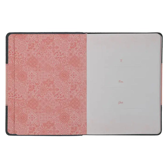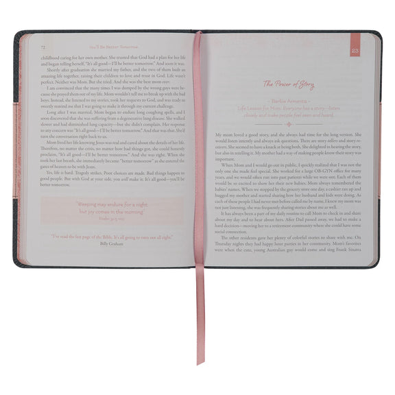 Life Lessons for Mom Gray and Pink Faux Leather Gift Book is a heartfelt compilation of stories about moms just like you—women who wholeheartedly care for their families, consistently show up when their kids need them, and courageously navigate the highs and lows of life as they raise their children.