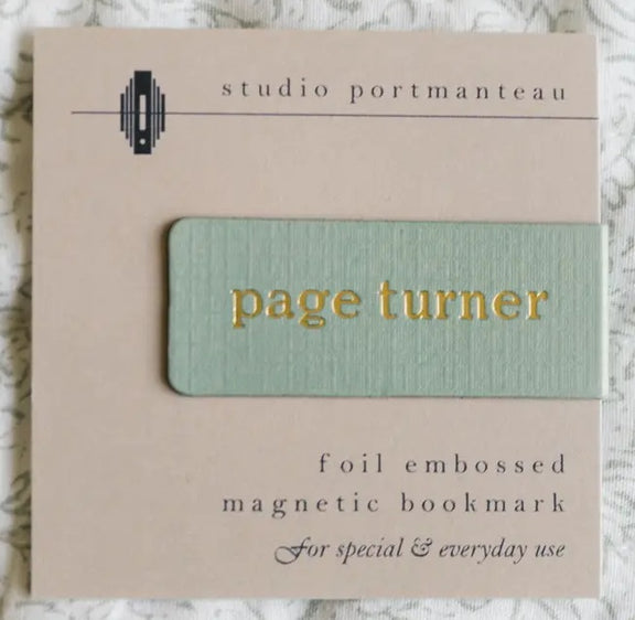 Mark your page in a favorite book in style with these sweet magnetic bookmarks, custom pressed with your foil embossed text "Page Turner" on a linen-texture background in a variety of pastel neutral hues.