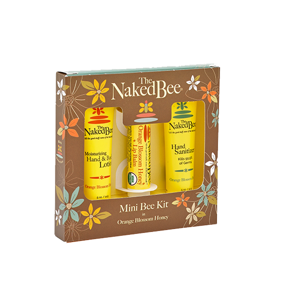 Includes .5 oz Orange Blossom Honey lotion, .5 oz. Orange Blosom Honey hand sanitizer & Orange Blossom Honey lip balm. This is a great way to introduce a friend to The Naked Bee!