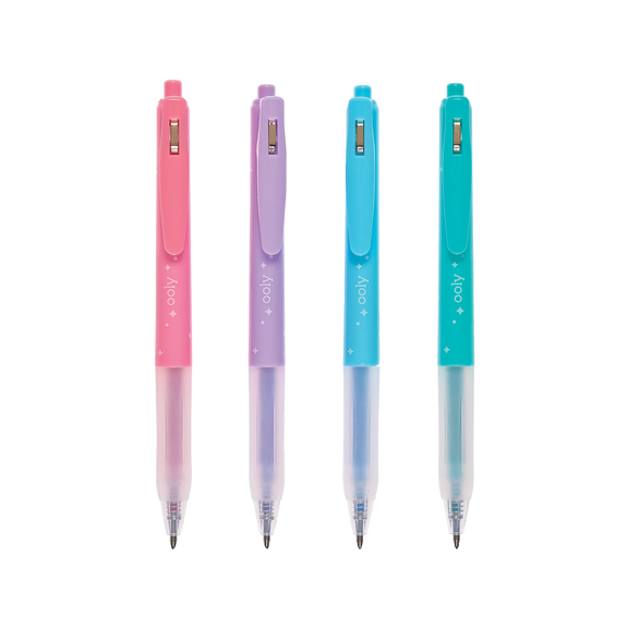 Make your writing stand out with a bit of sparkle. Oh My Glitter! Gel Pens have 4 colors of glittery ink in a retractable barrel. Add on the soft comfort grip plus the “pocket” clip and you have the perfect glitter gel pen set. With 4 different glitter ink colors to choose from writing will never be boring. And if you want to be the glamourous nerd just use the clips to secure the pens in your pocket. Drawing and writing with Oh My Glitter! Gel Pens couldn’t be smoother and the comfort rubber grip will keep you going. This set of 4 delicious glitter gel pens work well for everything from the office to school to personal planners and calendars.