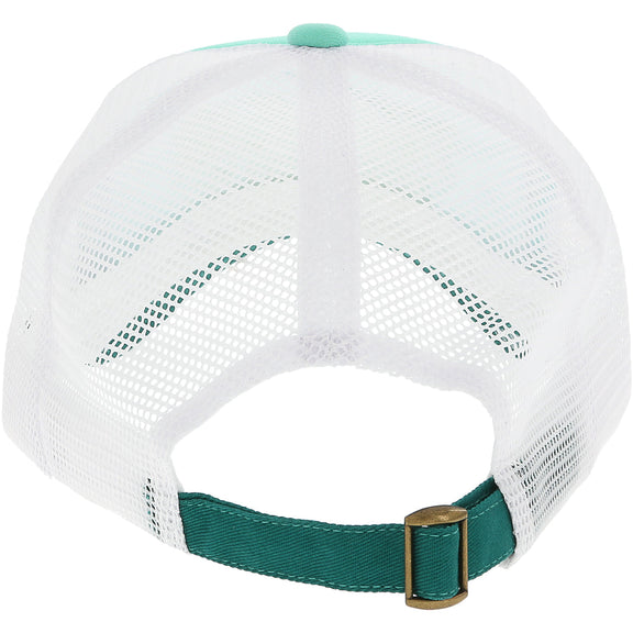 - PREMIUM QUALITY: This adjustable snapback trucker hat has a tuckaway strap with rust-proof bronze hardware for tightening. The cotton teal brim, aqua teal neoprene upper, white mesh sides, and back are all sewn together to construct the baseball cap.