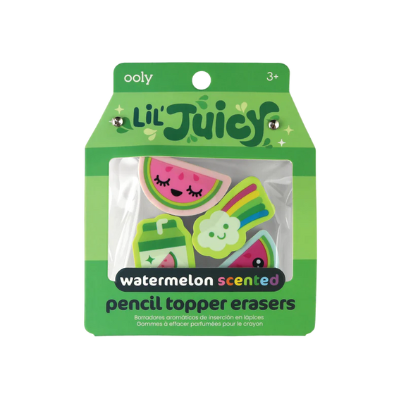 Add some cuteness to your pencils with the Lil’ Juicy Scented Pencil Toppers. These sweet smelling erasers have 4 different fruity scents to choose from; strawberry, grape, blueberry and watermelon.