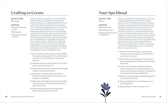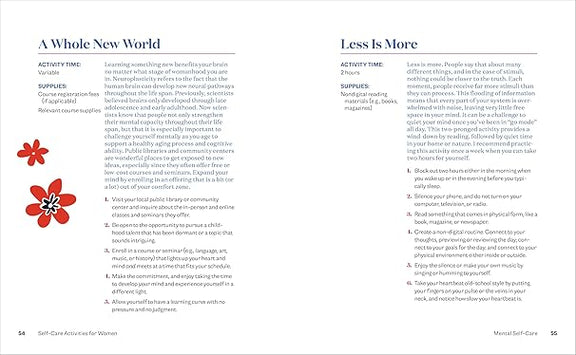A daily dose of self-care anytime you need it Doing small things to prioritize your own well-being is essential, especially for women, who are often the caretakers of everyone else in their lives. Self-Care Activities for Women encourages you to spend time on you, with a variety of simple ways you can relax, reset, and find a little joy. Take time for you— Learn 101 ways to practice self-care, from making a joy playlist to taking a mindful walk or cooking a healthy meal to share with friends. Self-care inside and out—Take care of yourself in every way, with specific chapters for emotional, mental, physical, social, and professional self-care. Short and simple activities—These exercises are easy to do and require minimal materials—so you can always find one to dive into, no matter where you are or how much time you have. Pick up this self-care book for women today and create a healthy habit of checking in with yourself!