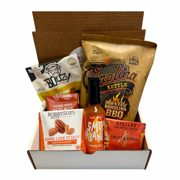 Unwrap the heat with Some Like It Hot! This spicy gift includes locally made Hot Sauce, Boozy Jerky, and more! Perfectly packed for those who crave a little extra spice in their life!