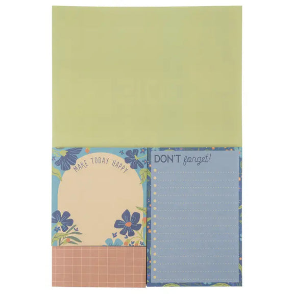 Jot down notes in style with our Sticky Note Booklet. Each 3-piece set features 150 sheets of sticky notes in various shapes and sizes, with four unique designs. Perfect for school, work, or home, these whimsical notepads are essential for the playful procrastinator. Details 3-piece sets 150 sheets total Dimensions Approx. 6"L x 4.3"W x 0.25"H Materials Paper