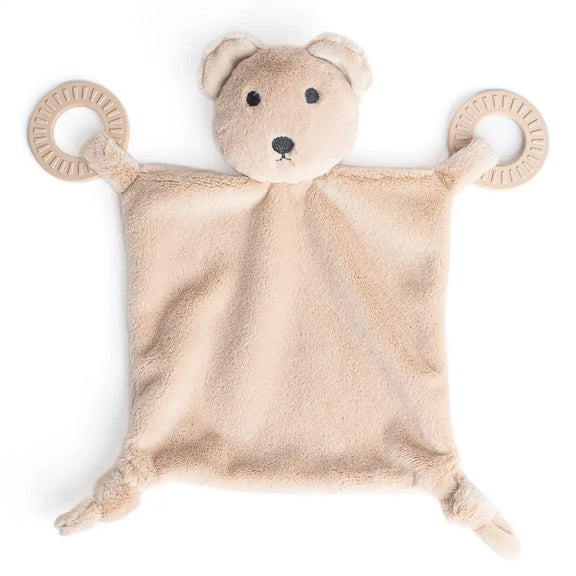 Featuring a plush friend to cuddle and teething rings to soothe sore gums, the Teether Buddy is the ultimate companion. The gentle rattle makes it a fun toy for infants. This Buddy was designed to grow with baby through the first years and remain their toddler companion. -Size: 13" x 14" -Age: 0 months+ -Non Toxic -Food Grade Silicone Teether Rings -FDA Approved -Free of BPA, PVC, Phthalates -Soft Polyester Faux Fur